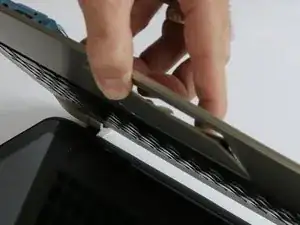 Вставьте кончик пластикового инструмента для вскрытия между задней крышкой и металлической рамой.