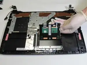 Обратите внимание, что хотя в этом руководстве предлагается снять материнскую плату и дисплей перед извлечением тачпада, это не является строго обязательным для его замены. Вместо этого вы можете отсоединить кабели, как показано в шаге 14, чтобы извлечь тачпад, оставив остальную часть компьютера нетронутой.
