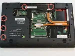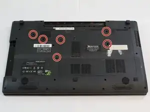 Переверните ноутбук так, чтобы отсек для аккумулятора был сверху.