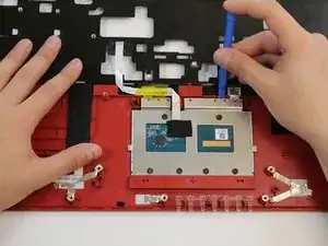 С помощью пластиковой лопатки для вскрытия подденьте тачпад и снимите его.