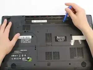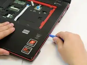 С помощью пластиковой лопатки для вскрытия подденьте корпус компьютера.