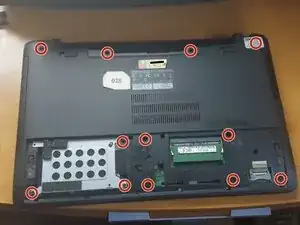 Снимите крышку над клавиатурой, чтобы получить доступ к материнской плате.