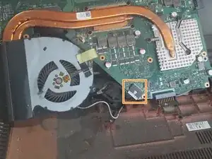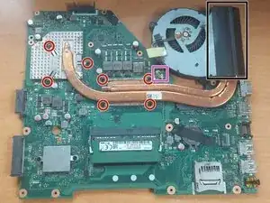Открутите радиатор (КРАСНЫЙ) и отключите разъем вентилятора (РОЗОВЫЙ).