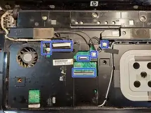После удаления клавиатуры открутите все винты, крепящие пластиковую верхнюю панель, и отключите все разъемы.