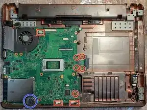 Открутите все винты, которые вы видите под ноутбуком. Удалите жесткий диск, модули оперативной памяти и модуль Wi-Fi. Также извлеките батарею.