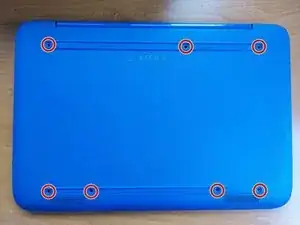Уберите 7 винтов, фиксирующих верхнюю панель.