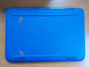 Снимите резиновые ножки ноутбука, чтобы открыть доступ к винтам.