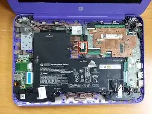 Отключите аккумулятор, а также разъемы клавиатуры и тачпада от верхней панели.