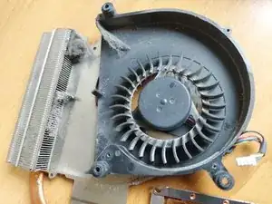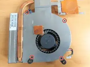 Выкрутите 4 винта, удерживающих сборку вентилятора.