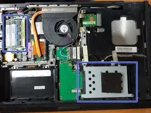 После снятия задней панели устройство должно выглядеть так. Сейчас самое подходящее время для модернизации жесткого диска и оперативной памяти.