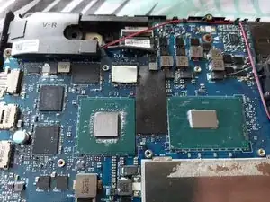 Открутите 5 винтов, удерживающих радиатор процессора. Аккуратно поднимите его.