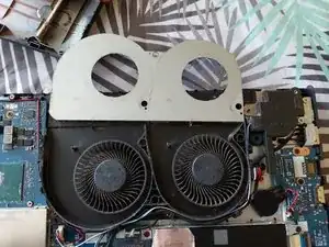 Вам не нужно полностью снимать сборку вентилятора с ноутбука для выполнения этого шага.