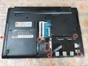 Удалите аккумулятор и небольшую панель, чтобы открыть дополнительные винты.