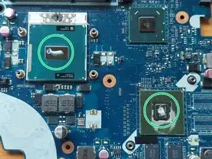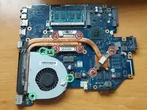 Удалите 2 болта, которые держат материнскую плату на месте.