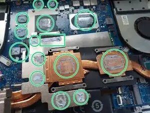 Не используйте слишком много термопасты, достаточно нанести немного на подушечку. Если у вас есть распределитель, используйте его. Термопаста распределится равномерно после того, как вы прикрутите радиатор. Проверьте состояние термопрокладок и при необходимости замените их.
