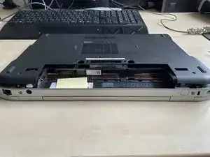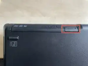 Начните с извлечения батареи с помощью двух защёлок (красные прямоугольники)