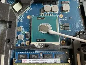 Теплопроводную прокладку (красный круг) не следует заменять термопастой. Если она высохла, используйте новую прокладку того же размера.