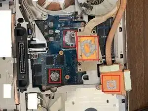 Очистите старую термопасту с радиатора, ЦП и ГП, затем нанесите новую термопасту
