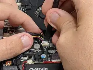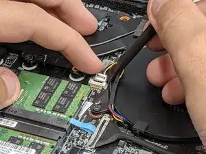 Отсоедините провода вентилятора, потянув за разъем, одновременно поддев его края лопаткой.