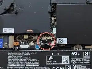 Осторожно отсоедините разъём аккумулятора от материнской платы.