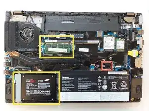 После снятия задней крышки можно заменить оперативную память или твердотельный накопитель, если необходимо.