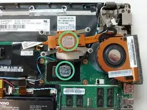 Открутите 4 винта, крепящих радиатор процессора, и отключите вентилятор.