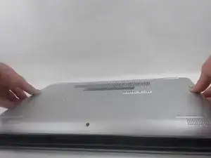 Аккуратно отожмите нижнюю крышку и снимите её с ноутбука.