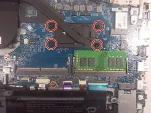 Ослабьте четыре фиксированных винта 3,5 мм, крепящие радиатор к материнской плате, с помощью крестовой отвертки Phillips #0.