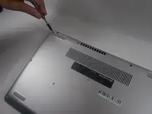 Осторожно проведите инструментом iFixit по всему внешнему краю ноутбука, аккуратно прикладывая усилие вверх.