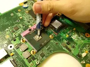 Это руководство покажет, как заменить термопасту процессора в ноутбуке Toshiba Satellite L300-04P (PSLB8C-04P01X). Термопаста — важное вещество, расположенное между процессором и системой охлаждения процессора, отвечающее за передачу тепла от процессора к радиатору охлаждения. Термопаста заполняет микроскопические зазоры между кристаллом процессора и поверхностью радиатора, поддерживая теплопроводность. Старая или деградировавшая термопаста снижает теплопроводность, что приводит к повышению температуры процессора и увеличению тепловой нагрузки.