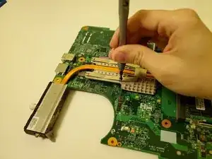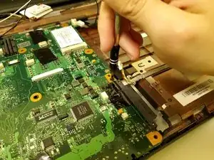 Используйте отвертку Phillips #00, чтобы удалить два винта материнской платы M2.5x6.