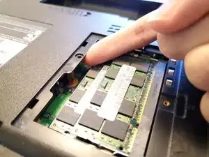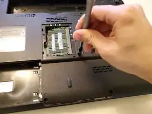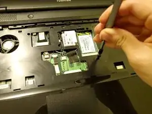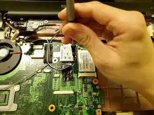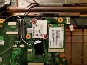 Используйте отвертку Phillips #00, чтобы удалить два винта модемной карты M2x3.
