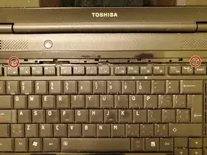 Используя отвертку Phillips #00, удалите два винта M2x3, удерживающие клавиатуру.