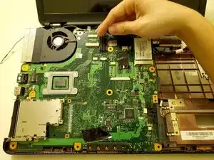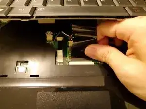 Используйте пинцет, чтобы аккуратно вытянуть и отсоединить лентовый кабель тачпада.