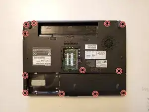 Используйте отвертку Phillips #00, чтобы удалить двенадцать винтов M2.5x6 нижней крышки корпуса.