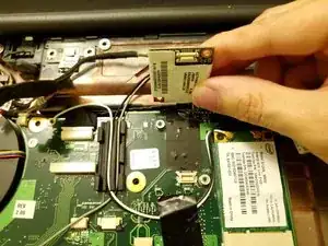 Потяните модемную карту вверх, чтобы освободить её из пресс-fit разъёма.