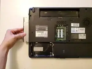 Возьмитесь за край оптического привода и потяните наружу, чтобы извлечь его из устройства.