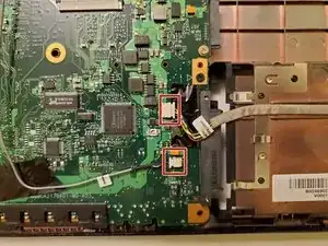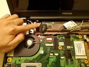 С помощью пальцев или пинцета отсоедините кабель кнопки питания и кабель веб-камеры.