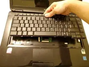 Не тяните клавиатуру сразу наружу, это повредит лентовый кабель под ней.
