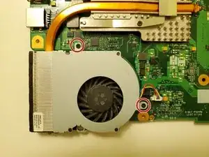 Используя 2 мм крестовую отвертку, удалите 2 винта вентилятора CPU M2x3.