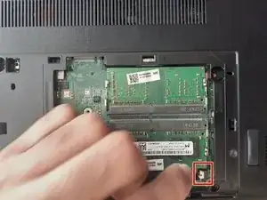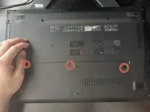 Отверткой Phillips #0 выверните три винта с крышки, закрывающей оперативную память и жесткий диск.
