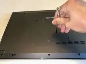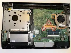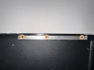 Снимите 3 маленьких винта, которые находились под оптическим приводом, используя отвертку Phillips с маленьким наконечником.