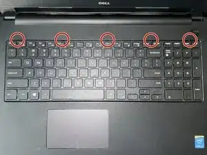 Используя маленькую плоскую отвертку, подденьте в каждой отмеченной точке, чтобы отщёлкнуть клавиатуру от корпуса.