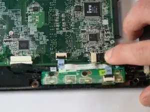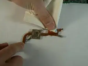 Этот шлейф приклеен к корпусу. Аккуратно оторвите его с правой стороны, пока он не перестанет прилипать к корпусу.