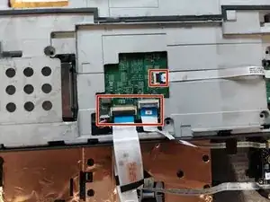 Снимите 2 скрытых винта, удерживающих дисплей. Отсоедините дисплей.