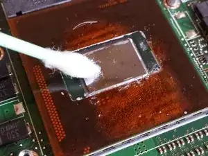 Используйте спирт, ватные палочки и бумажное полотенце, чтобы полностью удалить остатки термопасты с процессора.