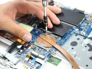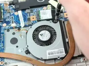 После установки медного радиатора верните вентилятор на место. Закрутите два винта 4 мм отверткой Phillips #1.