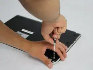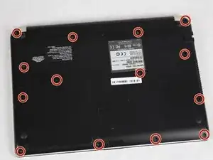 Отверткой Phillips #1 удалите все 14 винтов на задней стороне ноутбука.