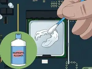 Используйте ватную палочку, смоченную 99% изопропиловым спиртом, чтобы удалить старую термопасту с процессора.