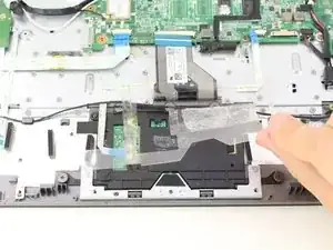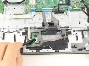 Используя лопатку, подденьте фиксатор ZIF-разъема на трекпаде и удалите шлейф.